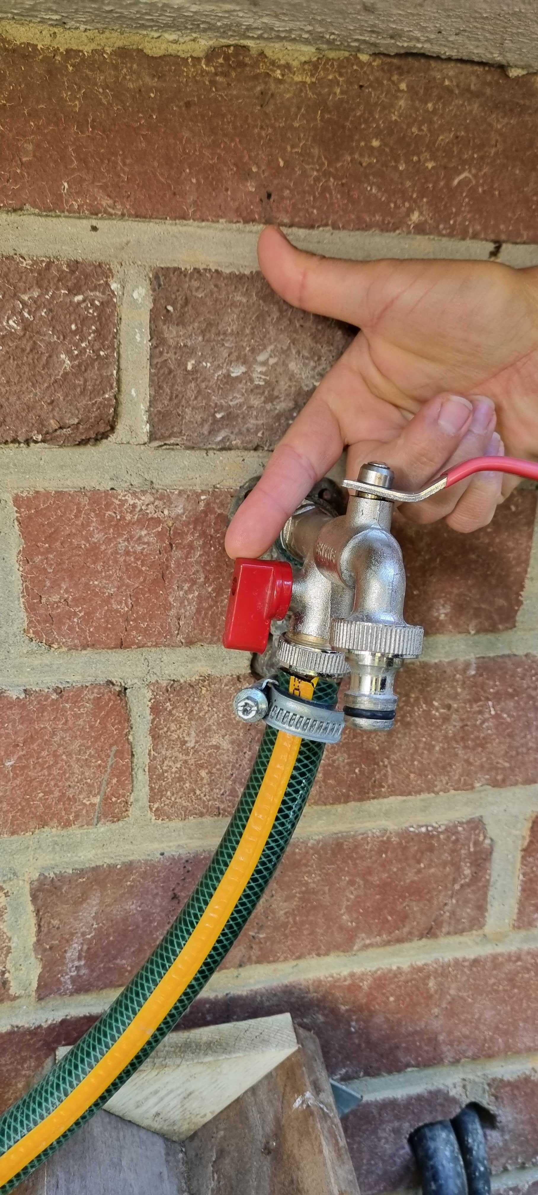 Siehe Bild unten im Dateianhang. Dieser Wasserhahn ist bei den Minizwergen direkt am großen Wasserhahn. Man muss den Wasserzufluss dort erstmal öffnen. Dann ist oben im Schulgarten neben dem Gewächshaus Richtung Bach der Entnahme-Wasserhahn. Das roteTeil fällt manchmal ab, einfach wieder drauf stecken :). Gießkannen sind im Gewächshaus.